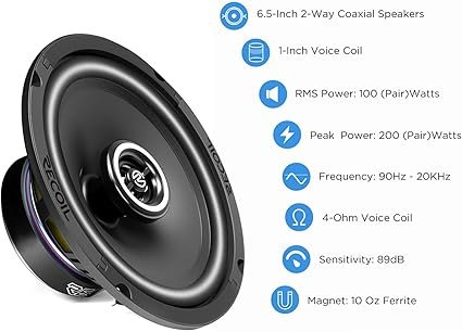 - Powerful & Efficient Performance: Handle your music with confidence. With an RMS power of 100W per pair and a peak power of 200W, these speakers are built to perform, whether you’re cruising or turned up to the max.